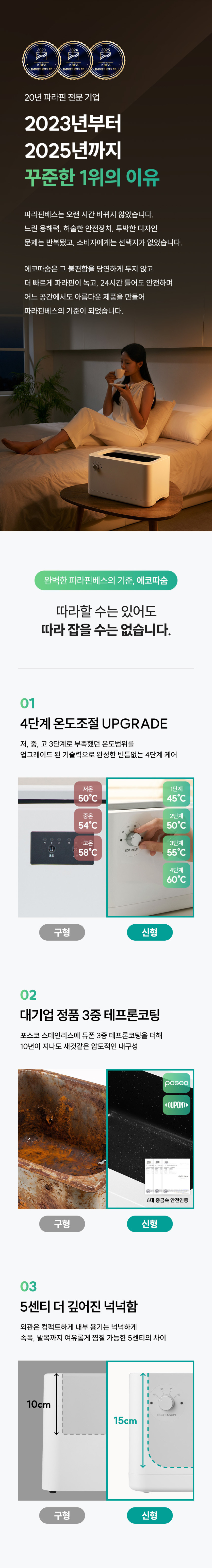 제품 분류 에코따숨 프라임 상세페이지 작성자 정보 최고관리자 작성 작성일 2026.01.21 17:53 컨텐츠 정보 4 조회 목록 본문 내용 태그 #고급스러운, #클래식한, #모던한, #깔끔한, #건강, #파라핀베스, #손, #통증 관련자료 이전 티파니 식탁 상세페이지 작성일 2026.01.21 19:29 다음 에코따숨 반값 특가 상세페이지 작성일 2026.01.21 17:46 댓글 0 등록된 댓글이 없습니다. 로그인한 회원만 댓글 등록이 가능합니다. 목록