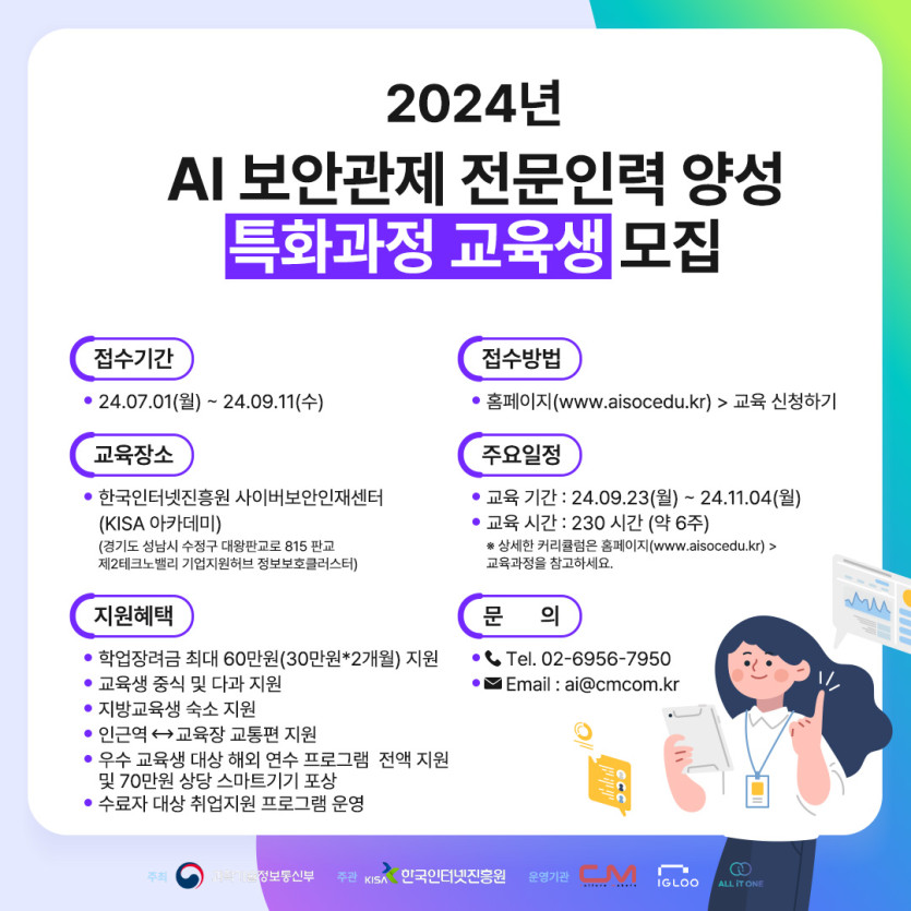 교육 분류 AI 보안관제 교육생 모집 카드뉴스 작성자 정보 최고관리자 작성 작성일 2024.12.13 16:55 컨텐츠 정보 1 조회 목록 본문 카드뉴스 태그 #깔끔한, #심플한 관련자료 이전 MAI TEAM 카드뉴스 작성일 2024.12.13 16:59 다음 전문인력 양성 교육생 모집 카드뉴스 작성일 2024.12.13 16:53 댓글 0 등록된 댓글이 없습니다. 로그인한 회원만 댓글 등록이 가능합니다. 목록